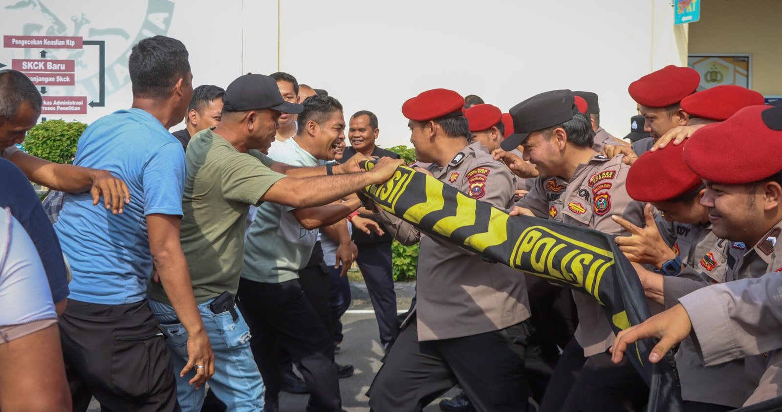 Dalam latihan tersebut, diperagakan berbagai tahapan penanganan situasi kontingensi, mulai dari kondisi aman hingga eskalasi gangguan kamtibmas. Pada tahap awal atau situasi hijau, personel melaksanakan pengamanan aksi unjuk rasa secara humanis dengan pendekatan negosiator, pengawalan massa, serta pengamanan oleh Dalmas awal sesuai prosedur.
